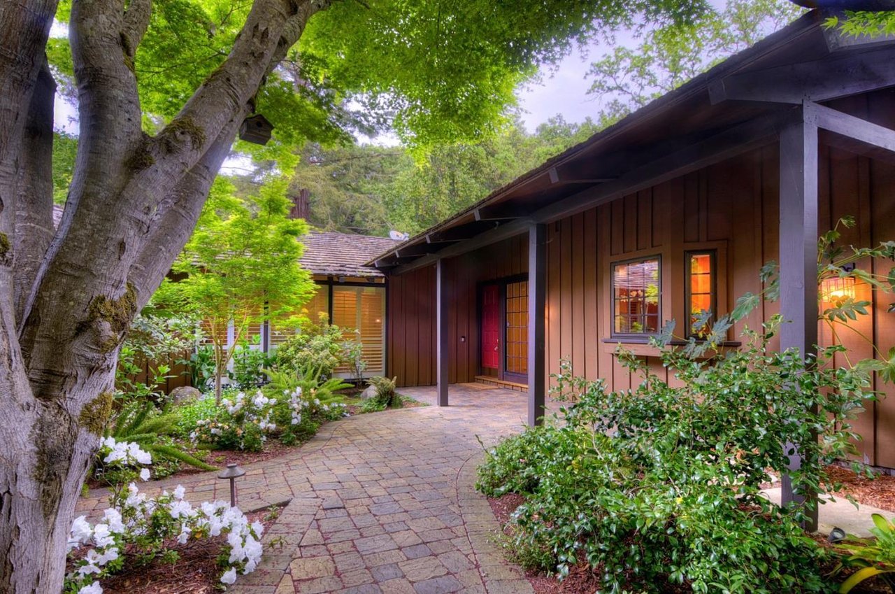 Prestigious Emerald Hills. This lovely home is warm and inviting ambiance with rich wood finishes. On a creekside setting of more than 1/2 acre. Quality craftsmanship throughout with rich wood finishes. Gourmet kitchen, formal dining room, family room with fireplace, huge master suite including a separate sitting room and opulent bath. Wine closet. Also a detached studio offers versatile options. A lovely back yard includes a deck, patio, lawn, lighted basketball court and Jacuzzi Artist studio/guest house has no plumbing. 3200 square feet includes artist studio.