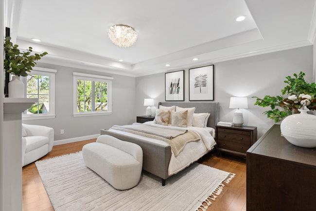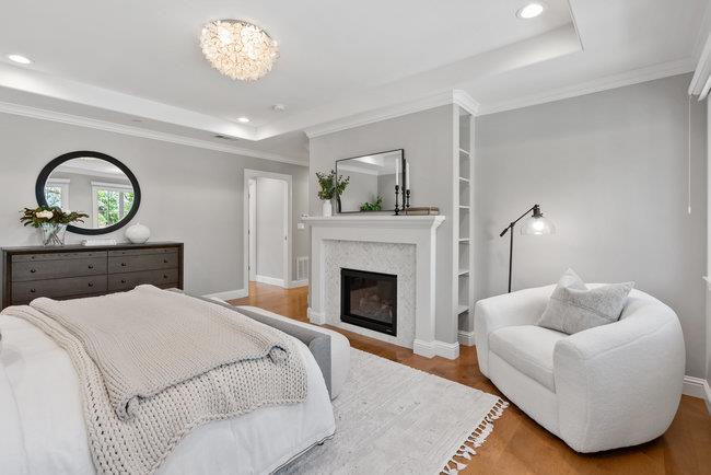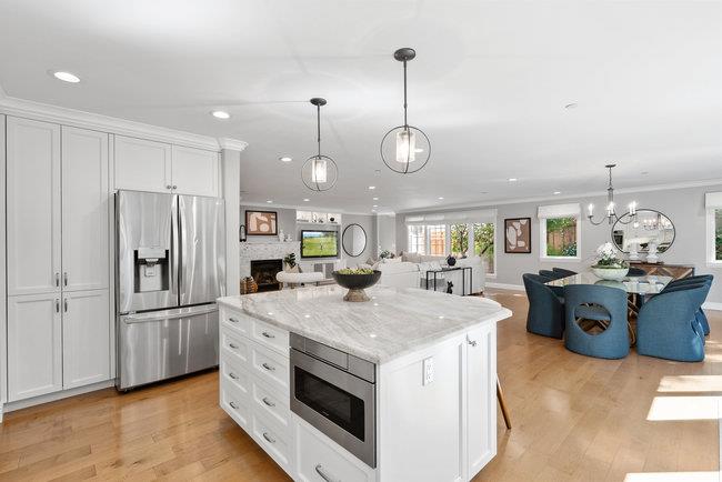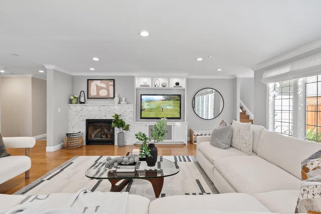 Custom built in 2017 with meticulous attention to detail and a consistent interior design palette throughout the home, 3024 McGarvey offers luxurious living in desirable Sterling Heights. The chef's kitchen with oversized island, Wolf gas stove top, Bosch double ovens, and natural stone countertops looks out to a spacious backyard and the bright, abundant dining area and living room with gas fireplace and custom built-in cabinetry. A den/media room offers flexible living options. Three bedrooms downstairs have hardwood floors and built-in closets. The large Primary Suite upstairs includes a gas fireplace, stunning bathroom, and walk-in closet with custom cabinetry. Also upstairs is a "bonus" room, perfect for a nursery or quieter upstairs office. A tall garage with epoxy floors has a separate side entrance and ample storage. The amazing mudroom has a laundry hookup, laundry area, and built-in cabinets for shoes and backpacks. Relax or play in the expansive backyard flanked by towering trees and fruit trees (lemon, plum, apple, and pear), a fixed natural gas BBQ, stone patio, grass and kids' play area. Less than a mile from Upton Plaza, Woodside Plaza shopping center, Maddux Park, and Stulsaft Park. Less than 2.5 miles to downtown Redwood City. Easy access to 280. Welcome Home.